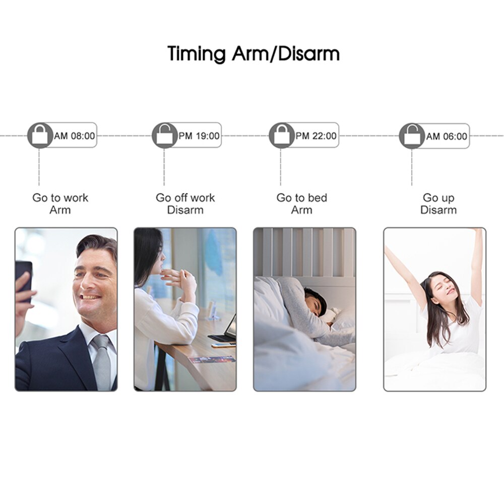 —- It is too much trouble to arm / disarm your system everyday, there are 3 sets scheduled arm / disarm function, set on demand, automatic anti-theif.