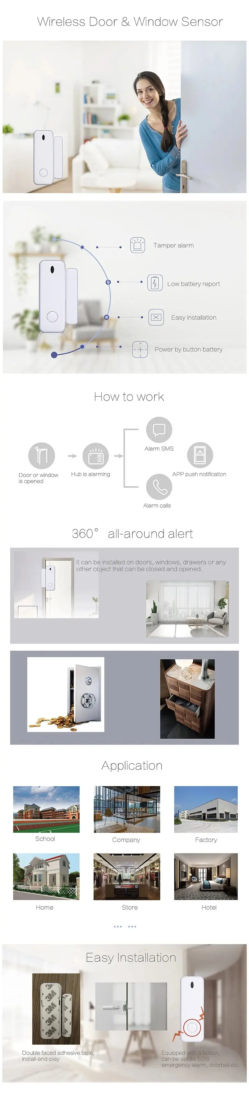 Note: the sensor cannot work alone.It needs to work with our alarm host.