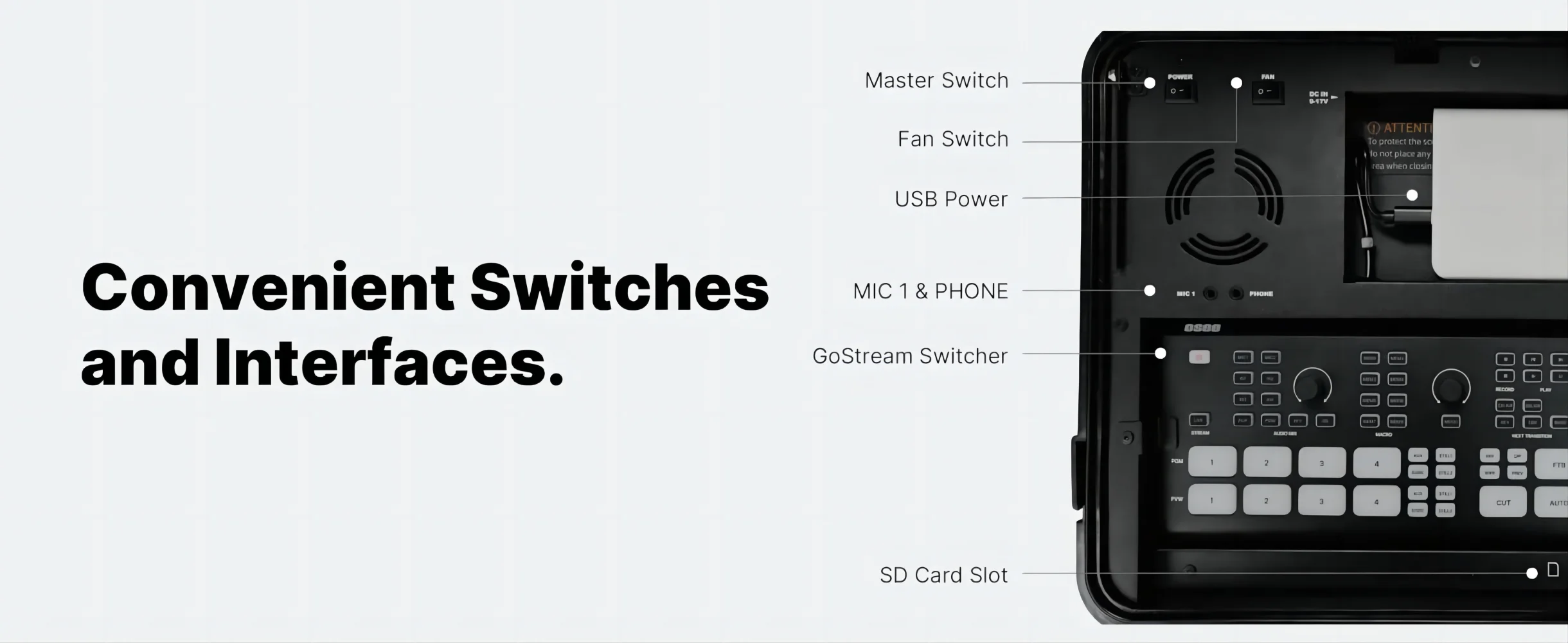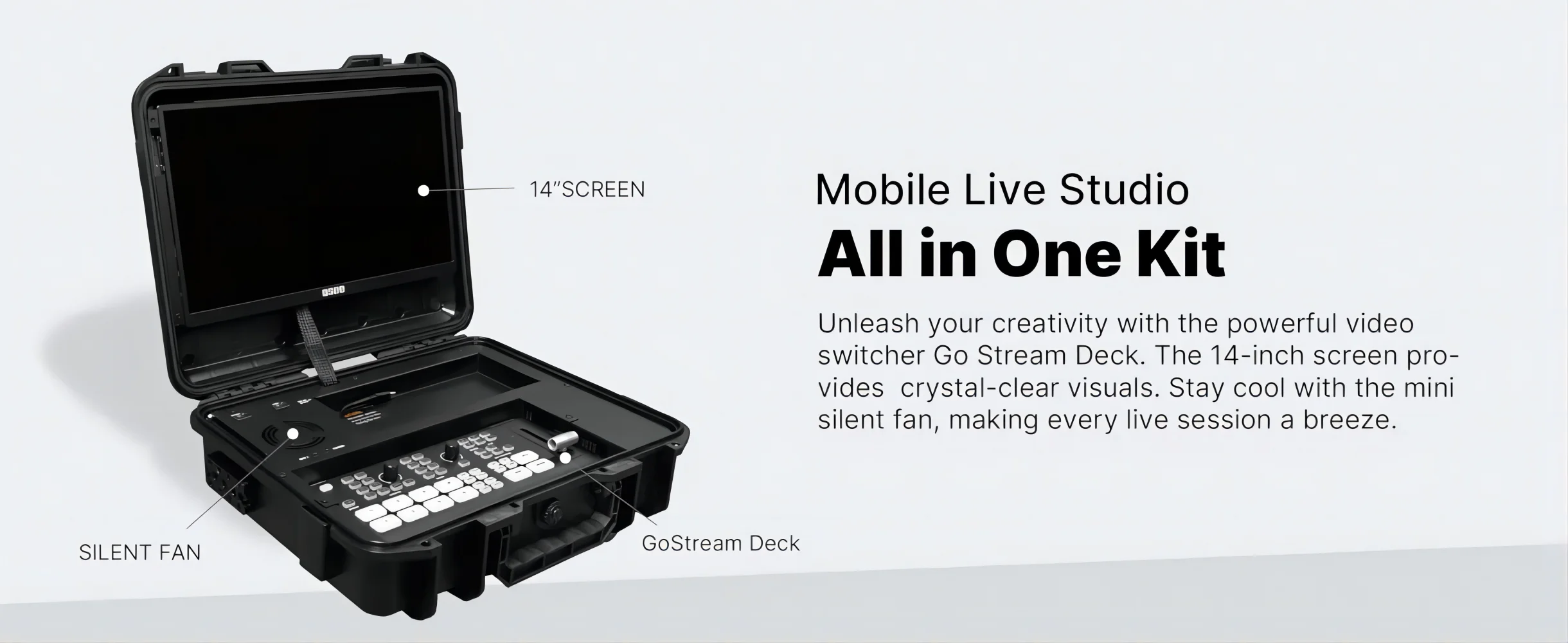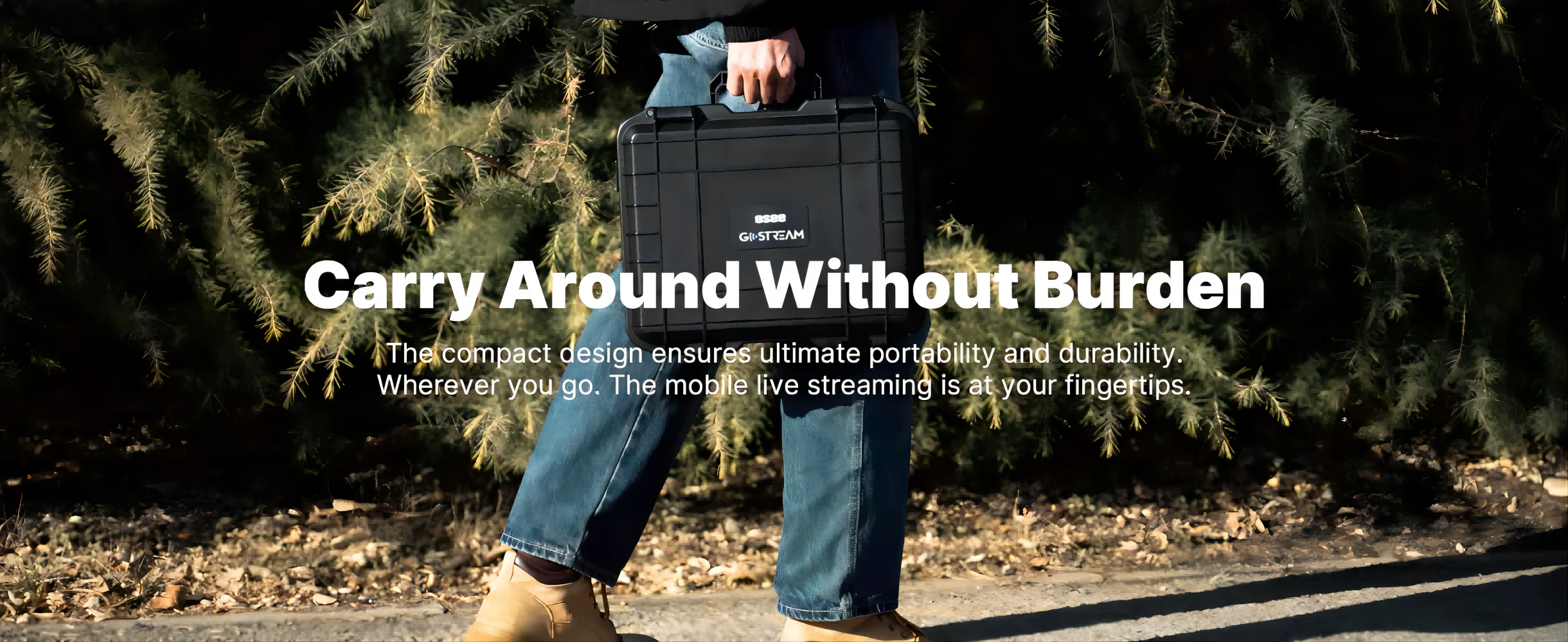 GoStream Deck Kit weighs less than 5kg. The compact design ensures ultimate portability and durability. Where you go, the mobile live streaming is in your hand.