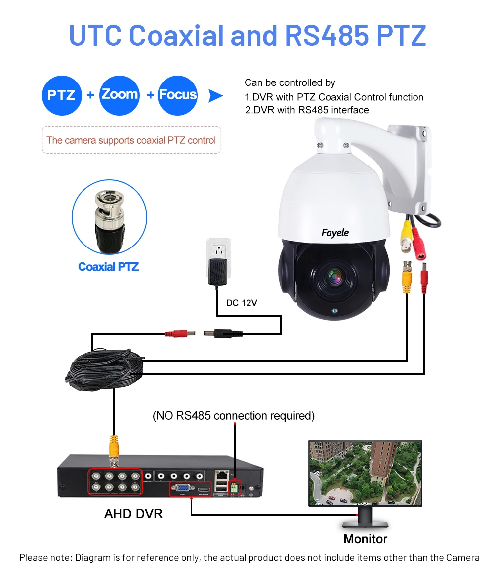 The camera is with UTC coaxial PTZ control with AHD DVR via just a BNC cable, it's also with RS485 wires for RS485 PTZ control. If you do not have a DVR, you can buy our DVR with picture above