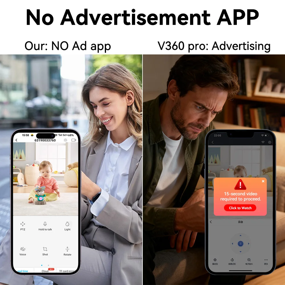 ✅Smart Alerts: Reduces false triggers by ignoring animals/vehicles—focuses only on human movement. (Suggestion: Capture app screenshots in English mode to showcase professional UI/UX.)