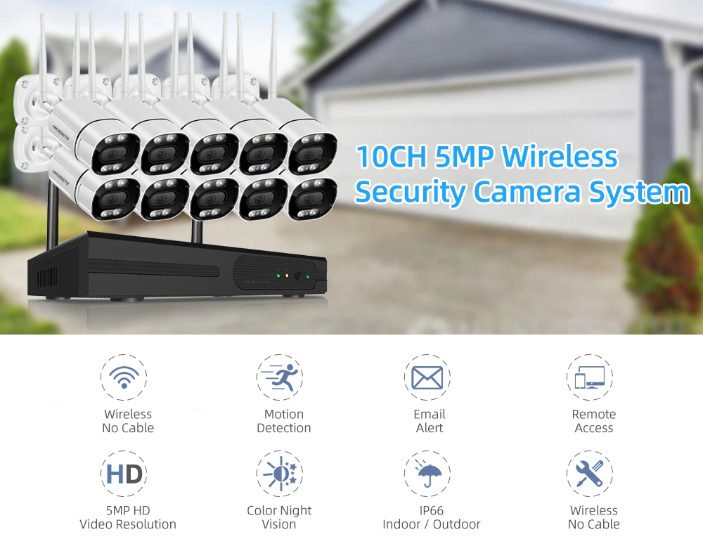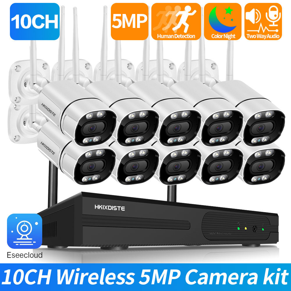 Plug and Play 8CH 10CH Audio 5MP HD Wireless NVR Kit Outdoor Color Night Vision Security 5.0MP IP Camera WIFI CCTV System H.265