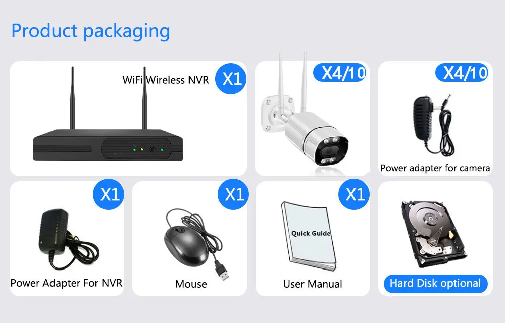 Super easy installation and configurations. Real plug and play, no need of any professional skills,you can totally do it yourself effortlessly and build your own surveillance system.