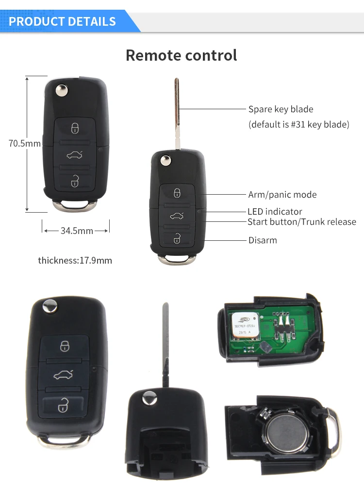 This is ec002pp-v PKE alarm from EASYGUARD with push engine start & remote engine start function.