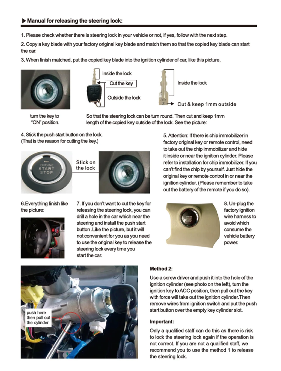5.You still need to unlock/release/remove the steering wheel lock during the installation.