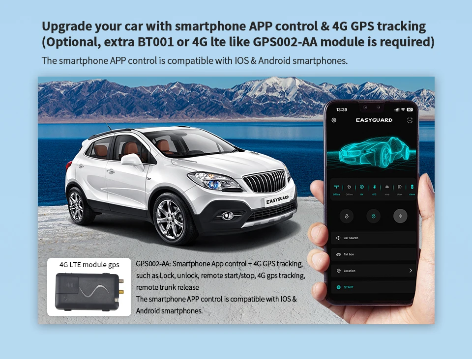 EASYGUARD Plug & Play CAN BUS PKE Remote starter Fit for Buick Regal,Lacrosse,Encore,ENCORE,With OEM key to start 4G LTE APP Control NFC entry