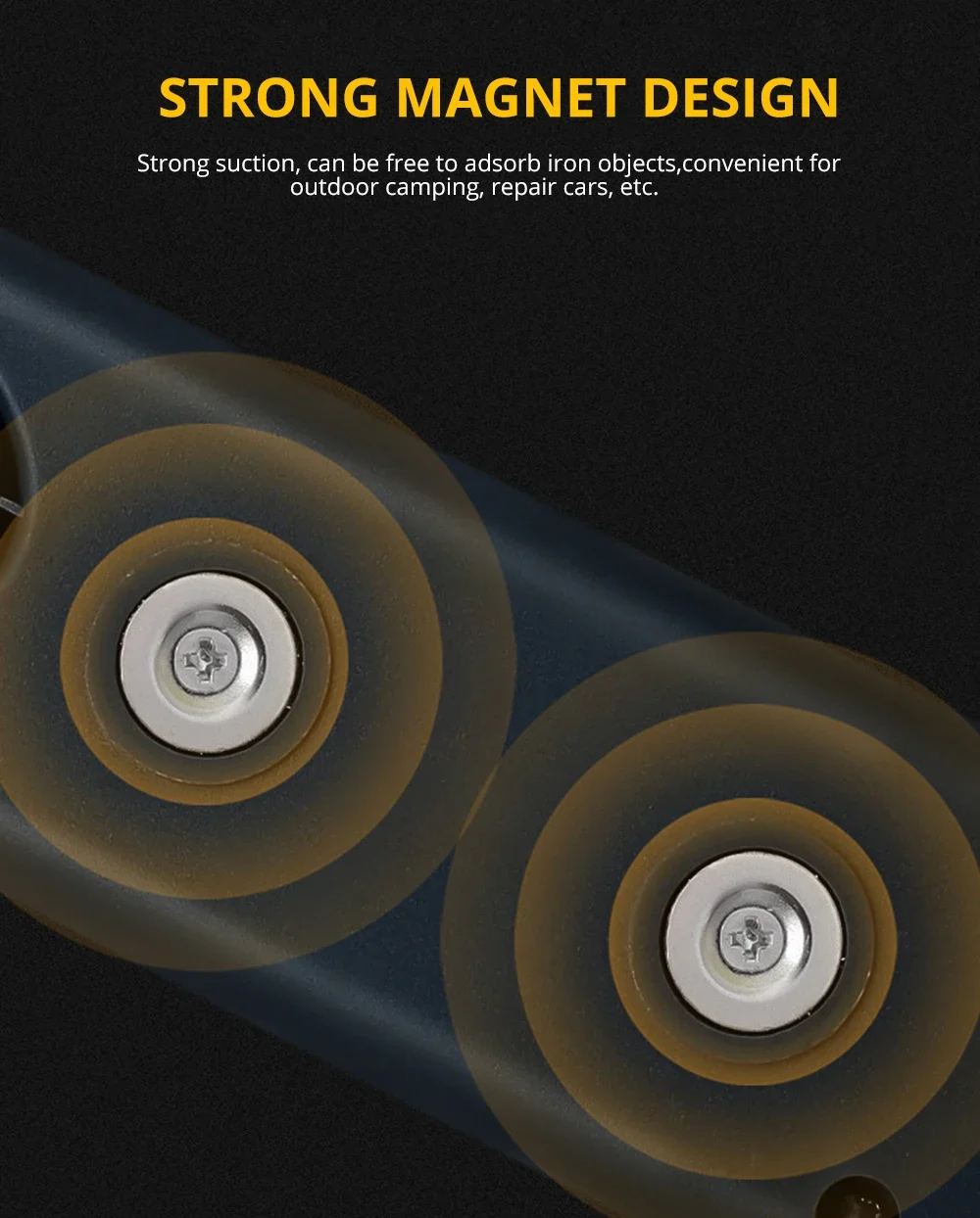 【3 functions in one portable light】: LED temporary work light includes 2 magnetic bases, adjustable rotating clamp and 360-degree rotating hook. The full-angle rotating suspension hook can be installed anywhere; built-in super magnets can be attached to metal surfaces such as the car body to provide temporary lighting.