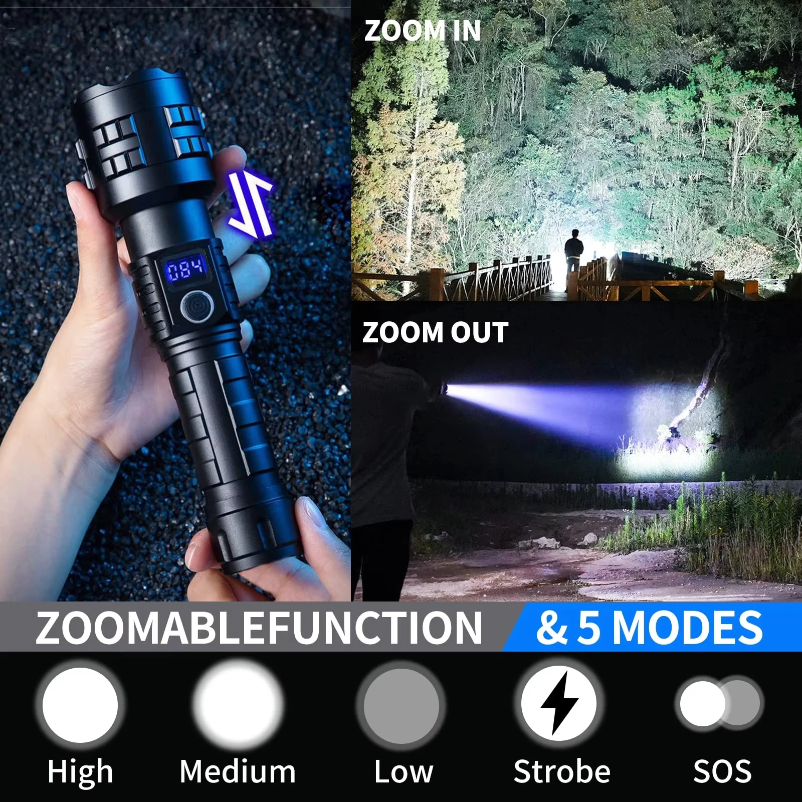 Powerful 200000 High Lumen LED Flashlight Super Bright Rechargeable Portable Ultra Power USB C Torch lamp Outdoor Emergency use