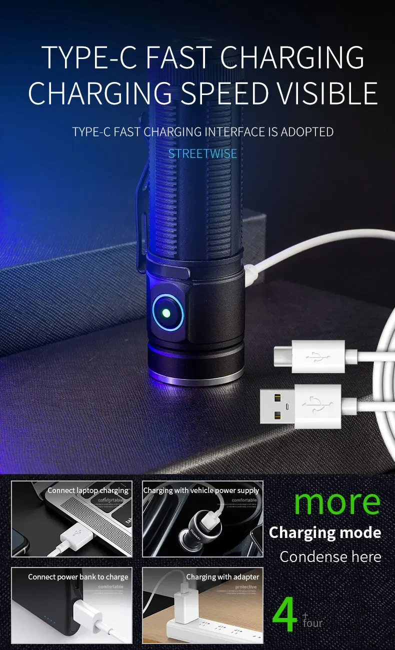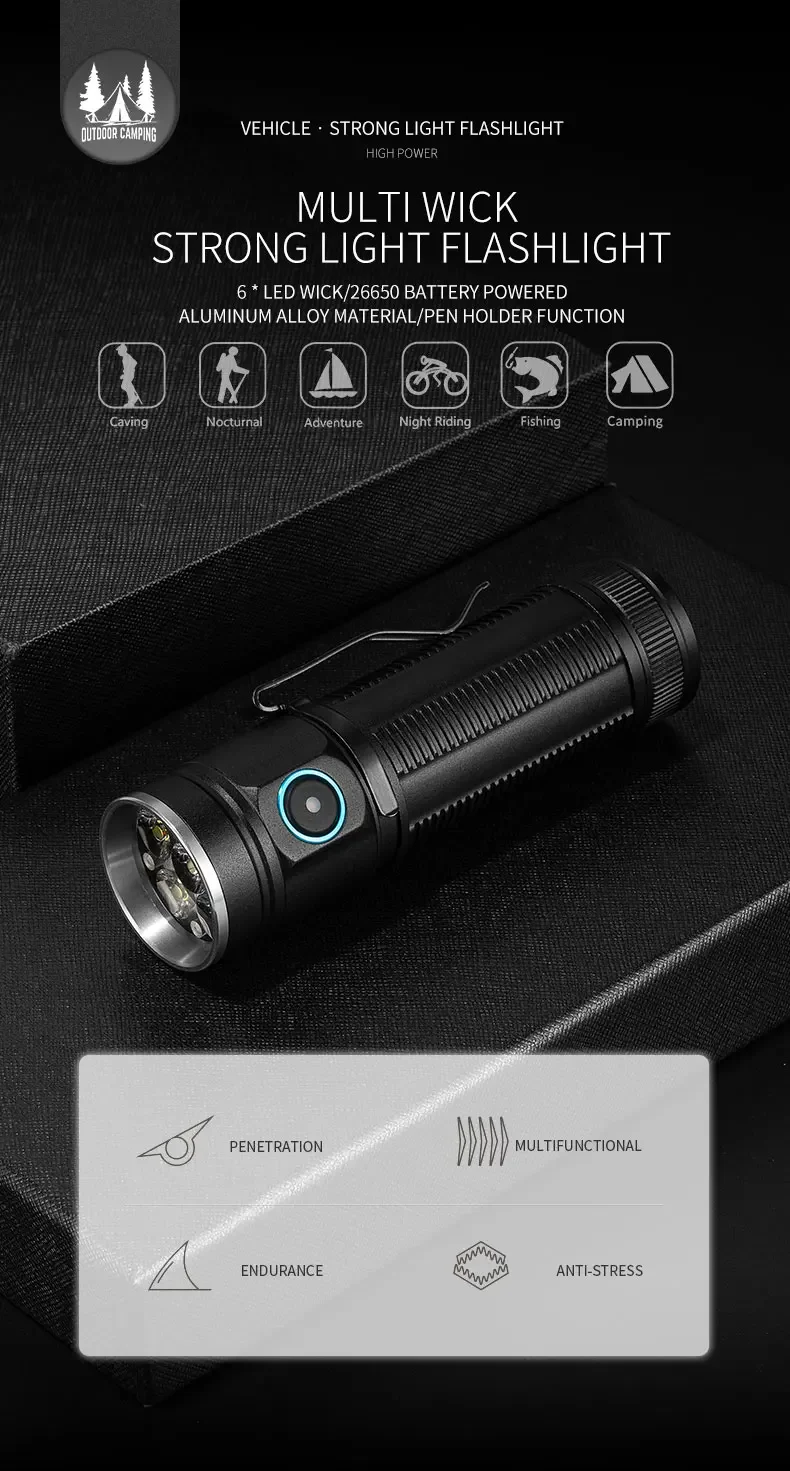 Function: outdoor activities, lighting, climbing, night riding, self-defense, emergency, hiking, pen clip