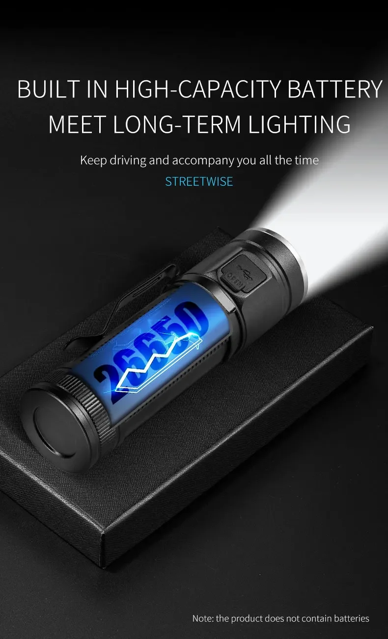 Power supply battery: 26650 lithium battery (single flashlight without battery)