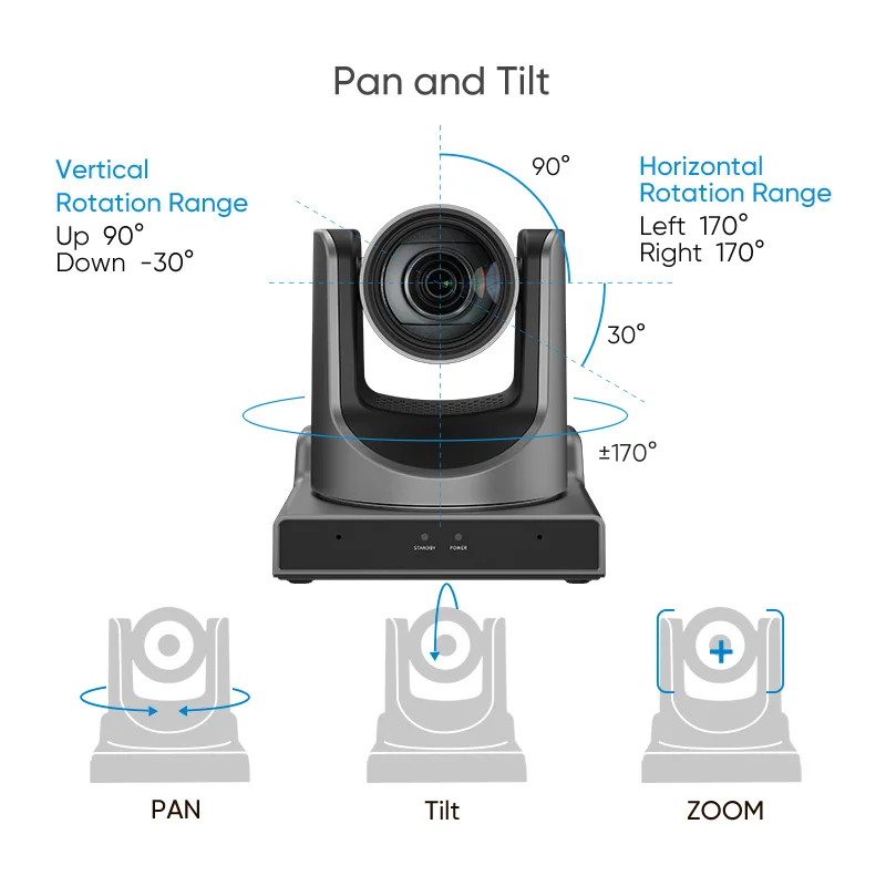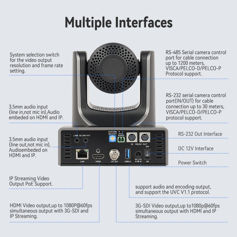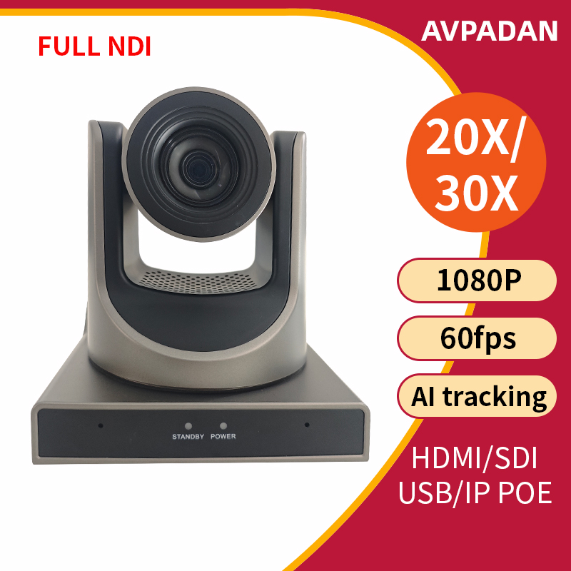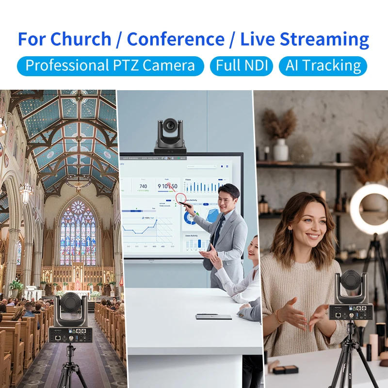 Professional 1080P60 PTZ Camera 20X/30X Zoom | Full NDI AI Tracking | HDMI/SDI for Broadcast & Church Live Streaming Conference