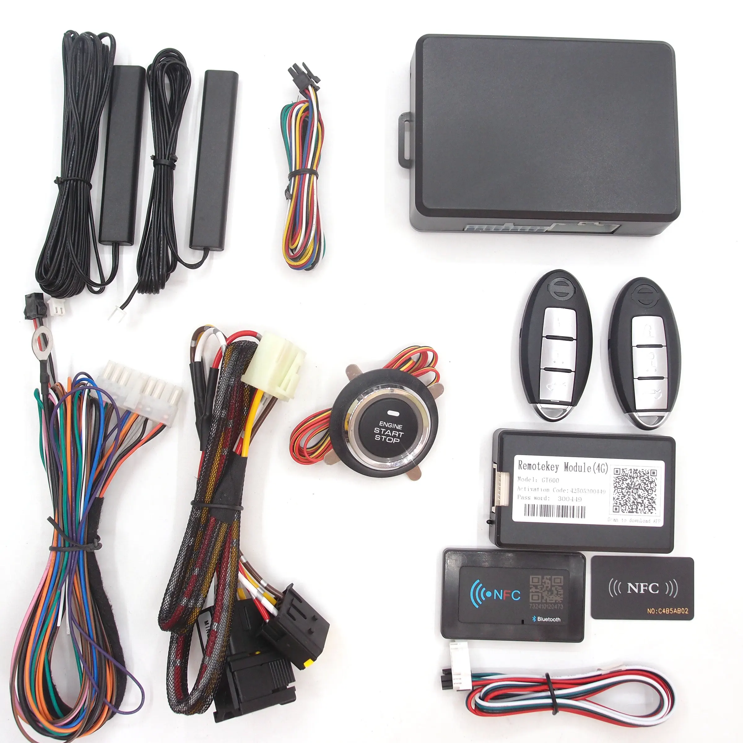 4.NFC has Bluetooth built-in too ,likes as 4G module , it can use APP to do lock, unlock and remote start too . and there is a NFC card to swipe for locking and unlocking, it can add NFC card into your smart phone if it supports NFC function, Swipe smart phone like as NFC card . Don't worry about your phone running out of battery