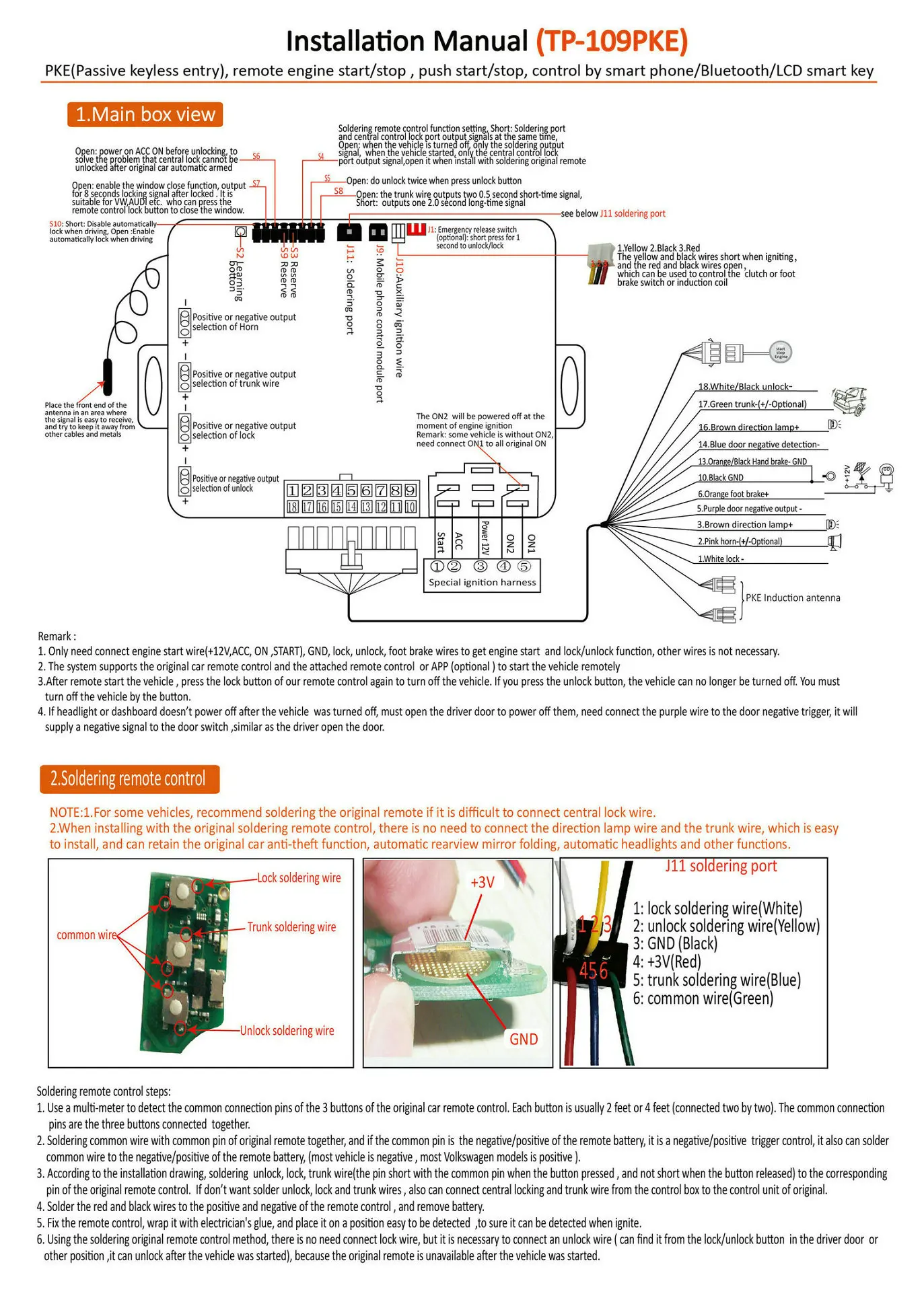 7.Compatible with original alarm, rear mirror folding,auto headlight,windows closer,if install the device by soldering original remote controller