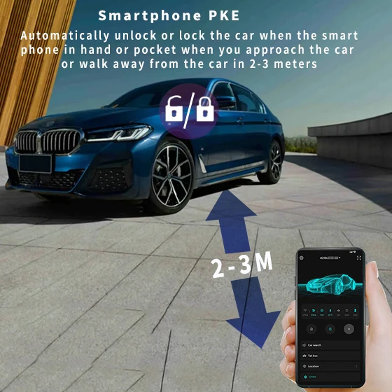 6.Both 4G , Bluetooth and NFC module has passive keyless entry function base on Bluetooth 5.0 . Take your phone closes to car for unlock automatically ,and leave away for locking.