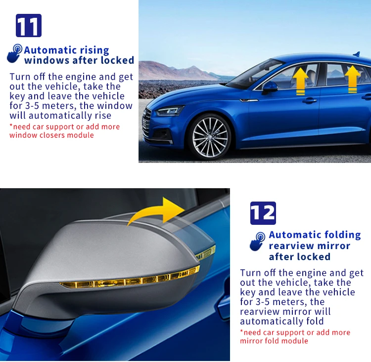 4. Support automatic window-closing or rear-view mirror folding function (the original vehicle must already have these functions , and the original remote may need to be soldered)