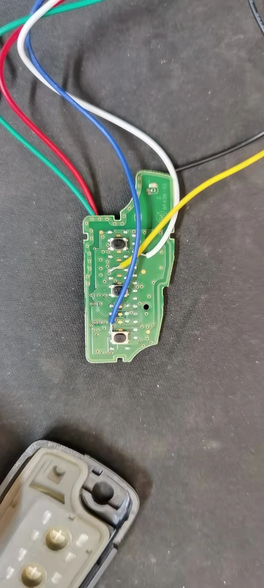 3. According to the installation drawing, soldering unlock, lock, trunk wire to the corresponding pin of the original remote control. (After the common pin is determined, diagonal pin is correct pin )