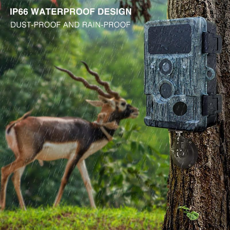 IP66 waterproof level are higher than IP56, the sturdy case extremely protects the game camera from rain and dust damage. The trail game camera can perform well even in tough environments, such as deserts, grassland, and tropical rainforest. And 80°wide angle lens provide broader detecting scope. Each detected movement will be captured swiftly and precisely.