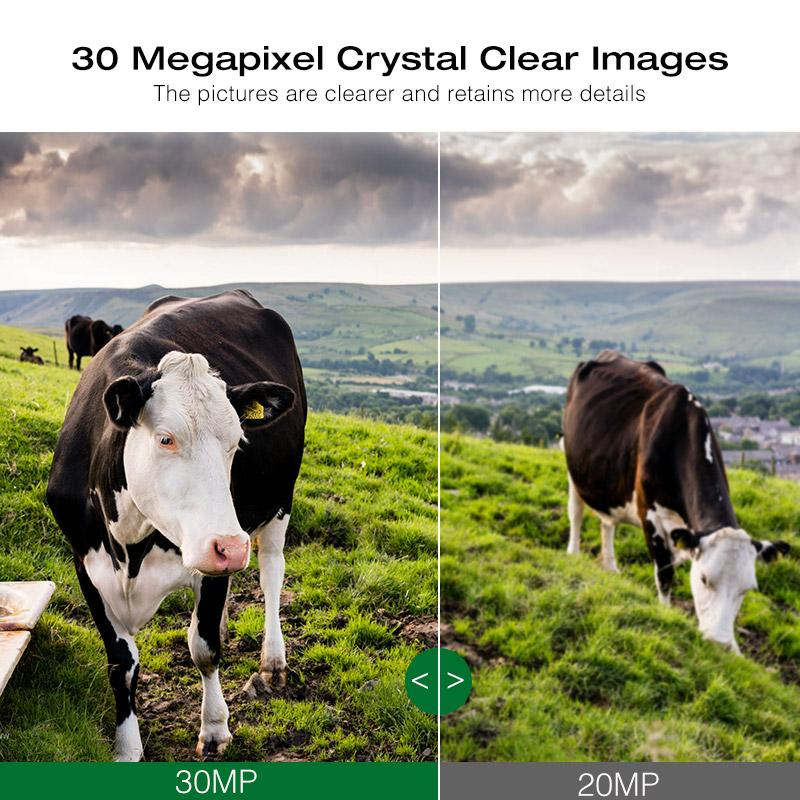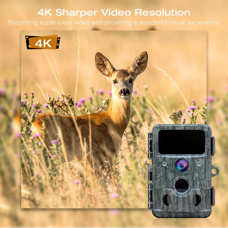 The trail camera captures 4K native video and 30 Megapixel crystal clear images with clear sound recording, providing more high-quality and exciting visual details during daytime(black and white at night). You could easily hear the vivid world of wildlife.