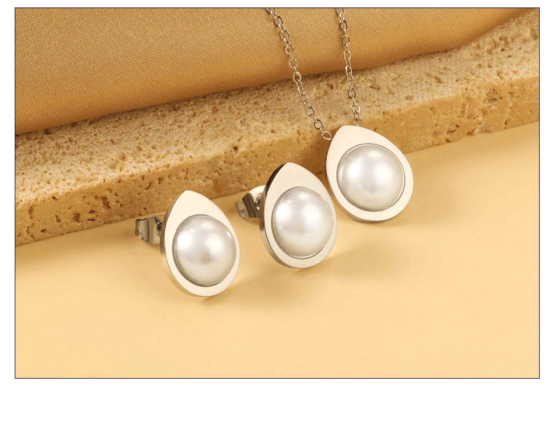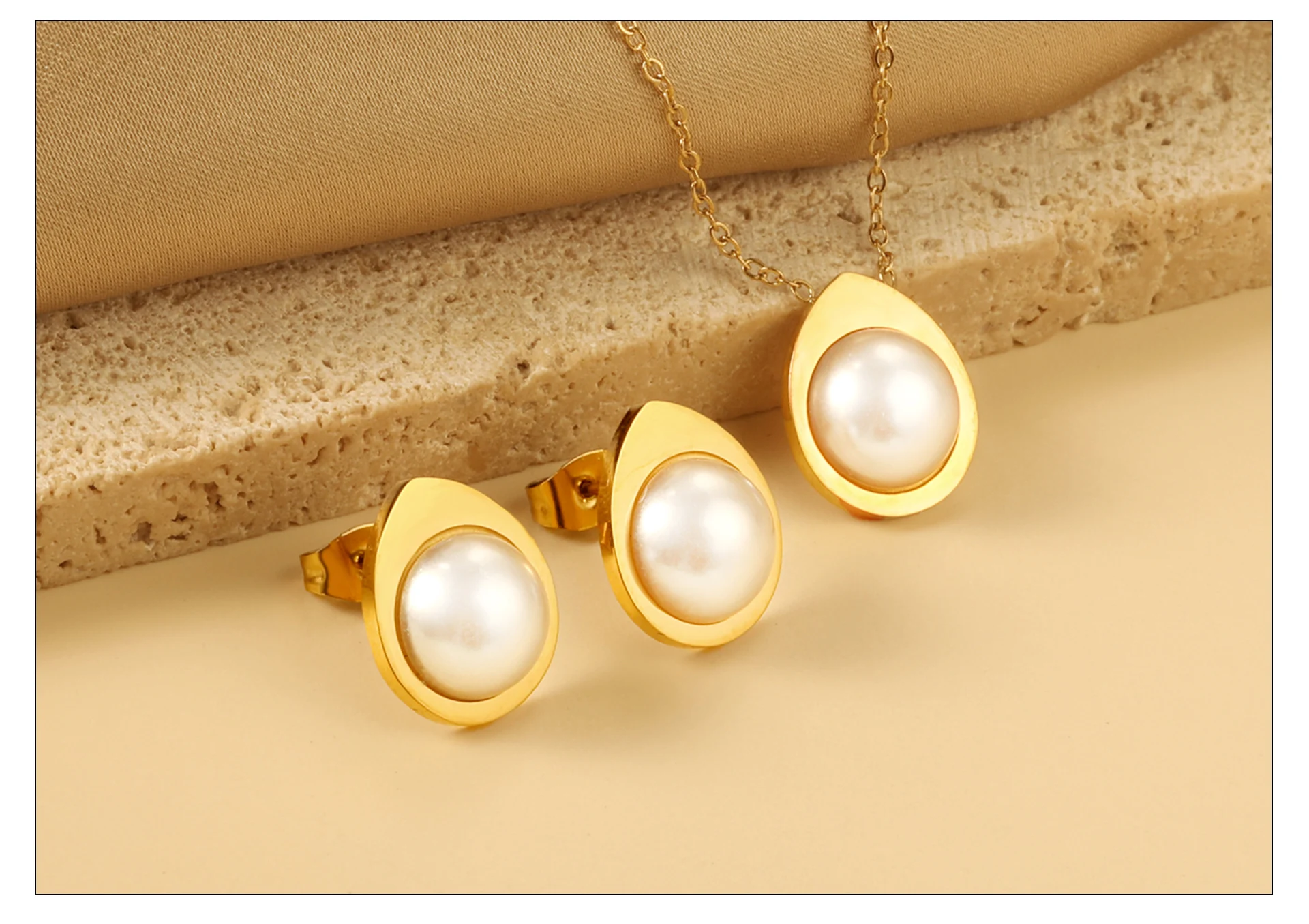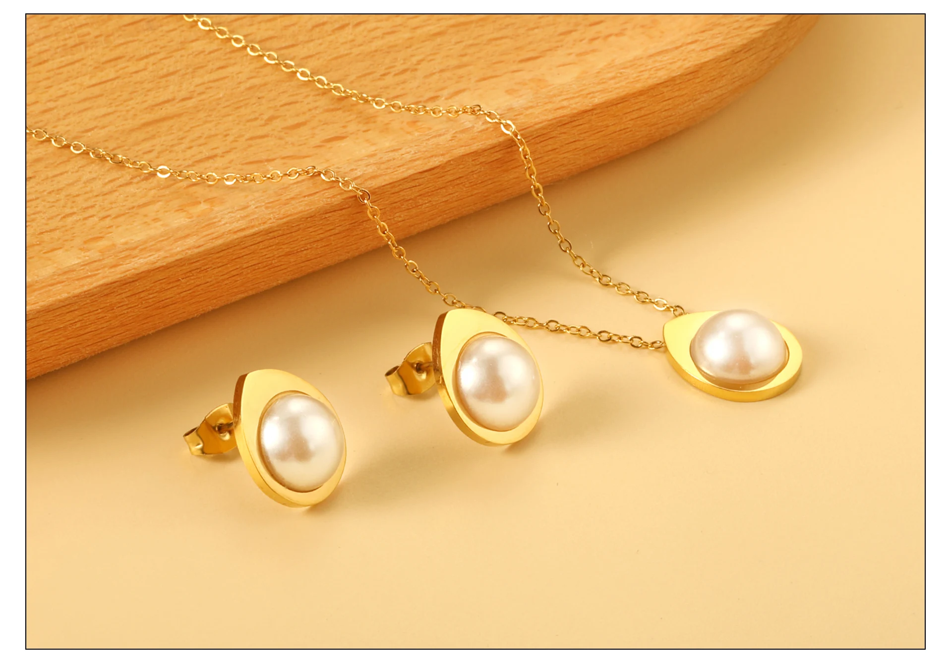 Retro Pearl Stainless Steel Earring Necklace Set Cubic Zirconia Gold Plated Jewelry Sets For Women Wedding Banquet Party Gifts