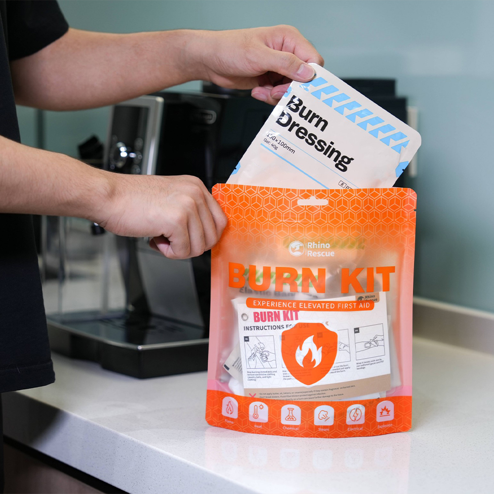 With RHINO RESCUE Burn Dressings, it takes no special training to give fast and effective emergency burn care for any type of burn injury. The sterile dressings are easy to carry, store and use. These dressings can also be applied directly to the burn without the need to pre-cool the burn before applying the dressing.