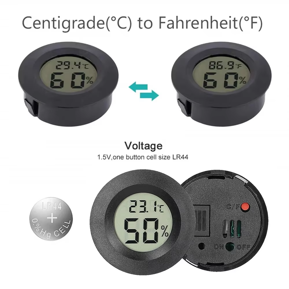 Circular embedded temperature and humidity meter for cigar and wine cabinets in cars, digital temperature and humidity meter for pet crawlers, acrylic box, electronic temperature and humidity meter