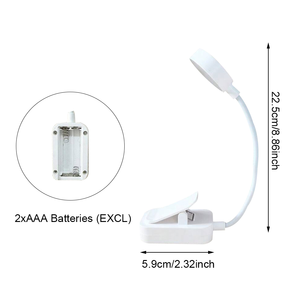 Runtowo LED Clip On Book Light Portable Reading Light Battery Powered 3 Color Eye Protection Stepless Dimmable Mini Desk Lamp