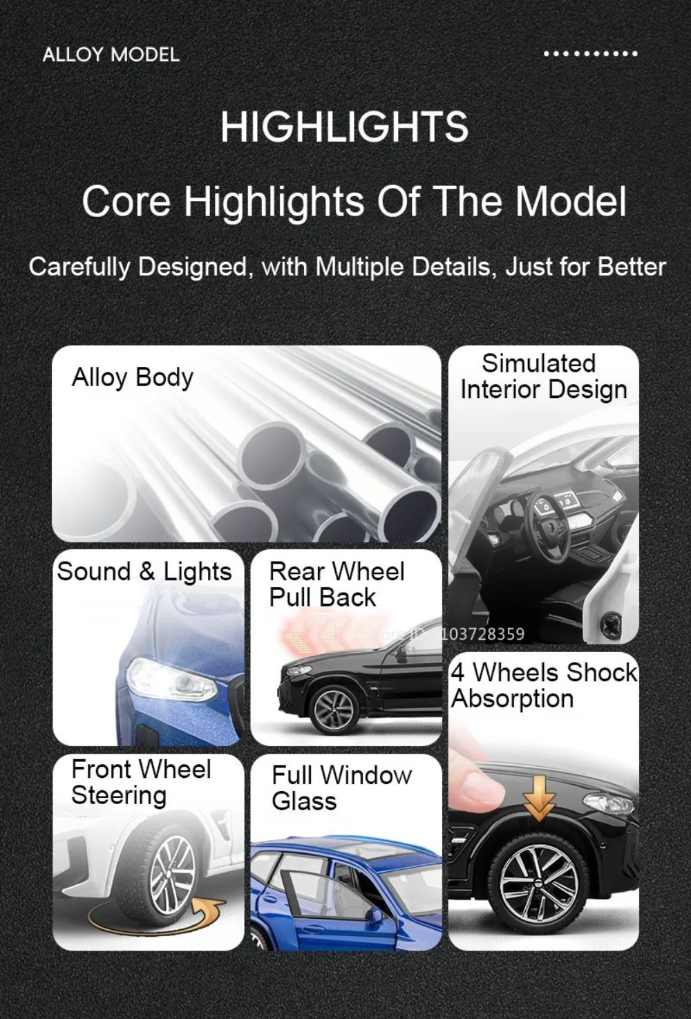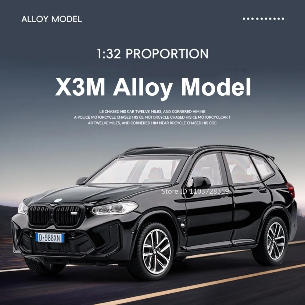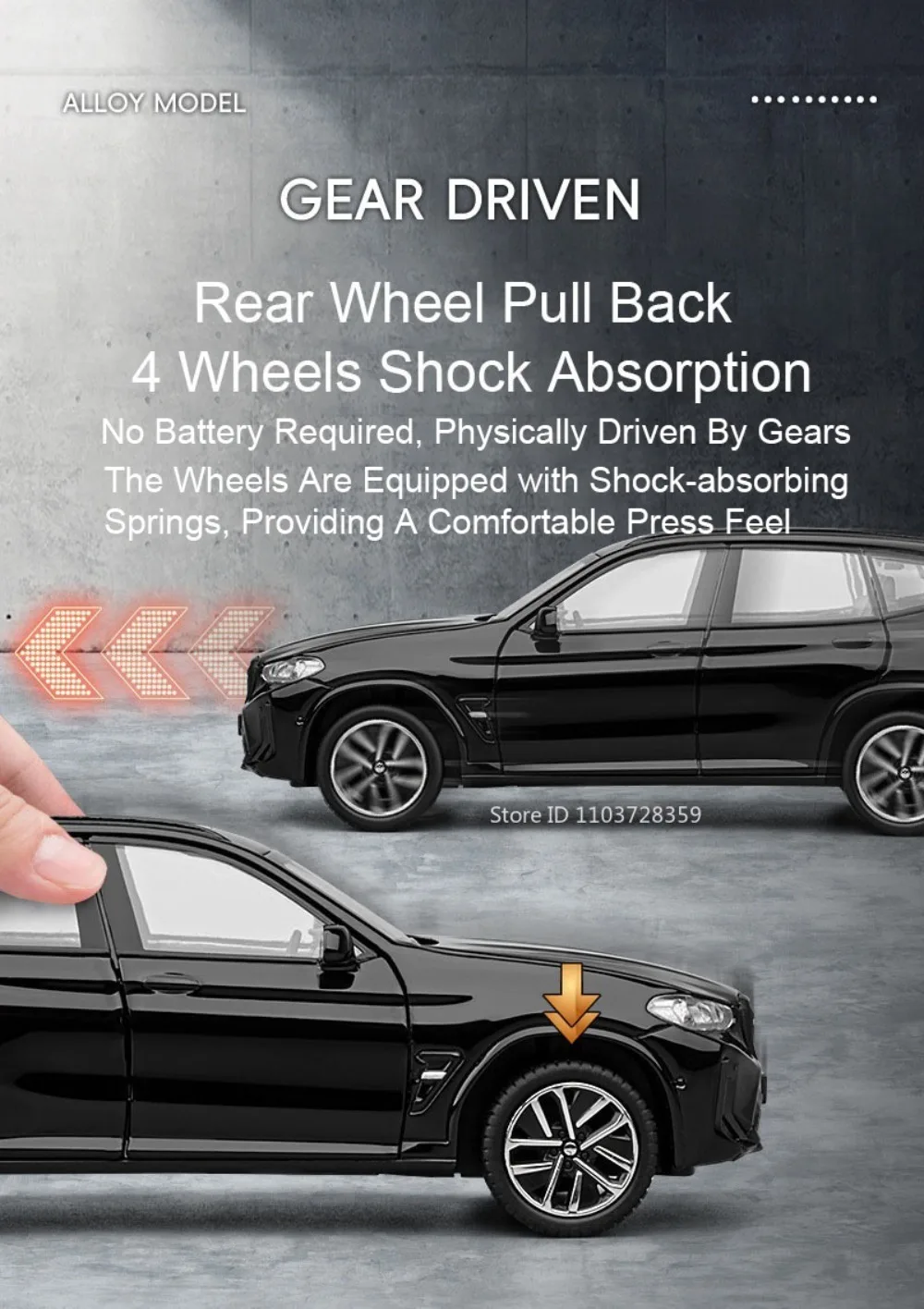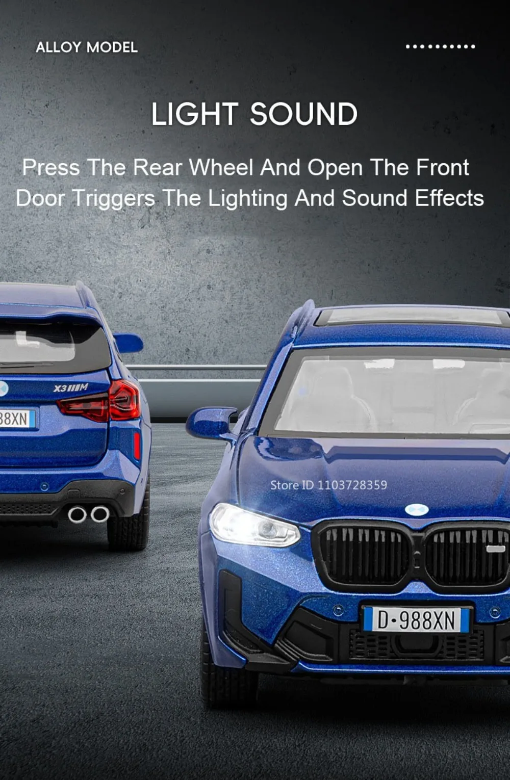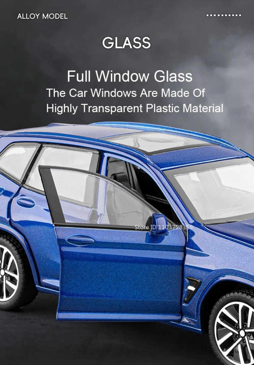 Scale 1:32 M4 X3M Toy Car Model Pull Back Music Light Doors Opened Miniature Vehicle Metal Diecast Models Kids Educational Gifts