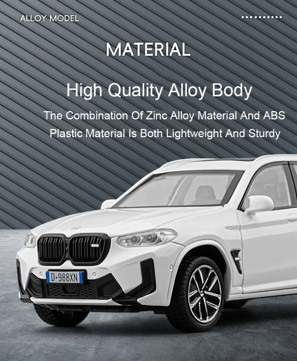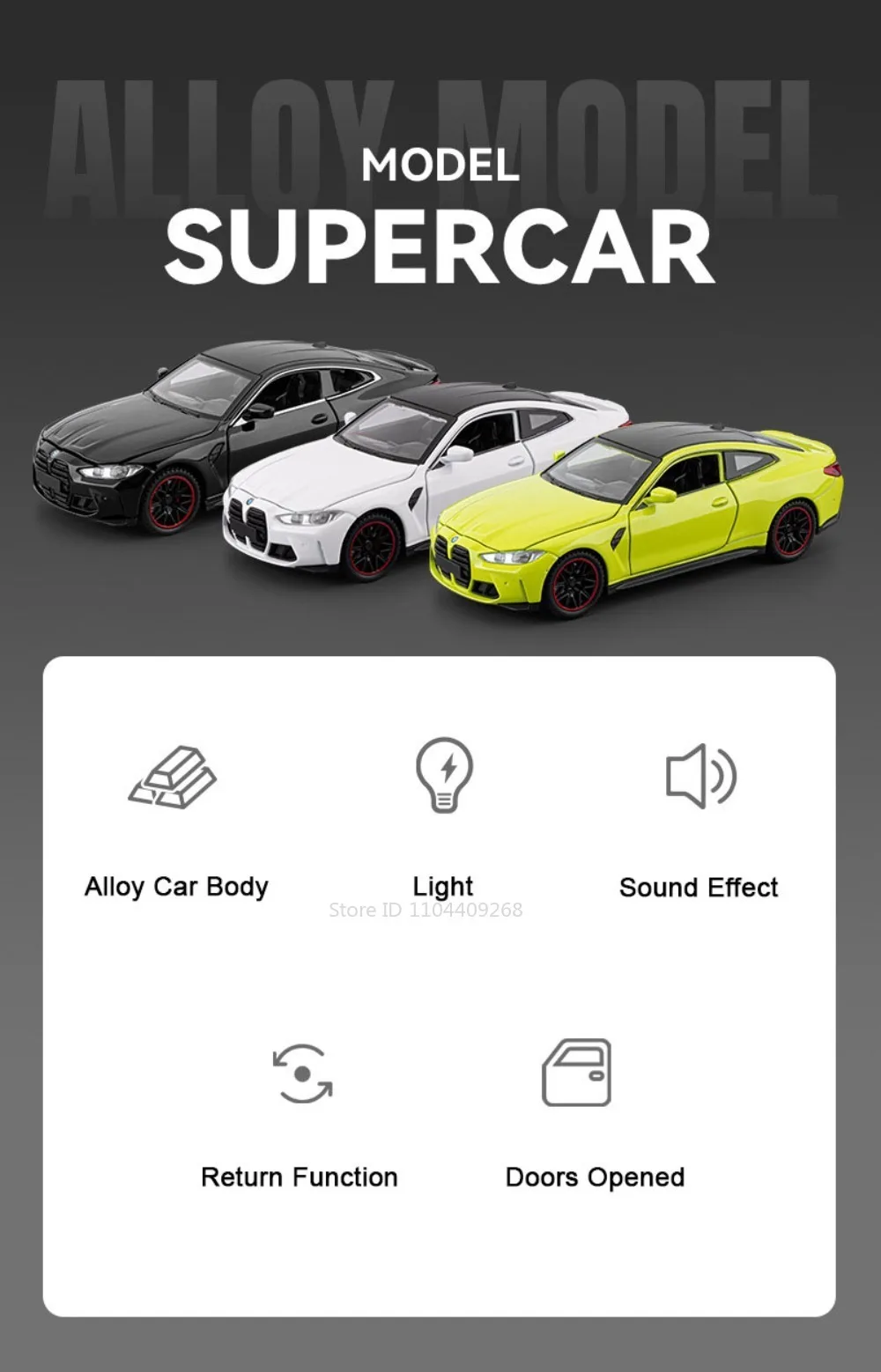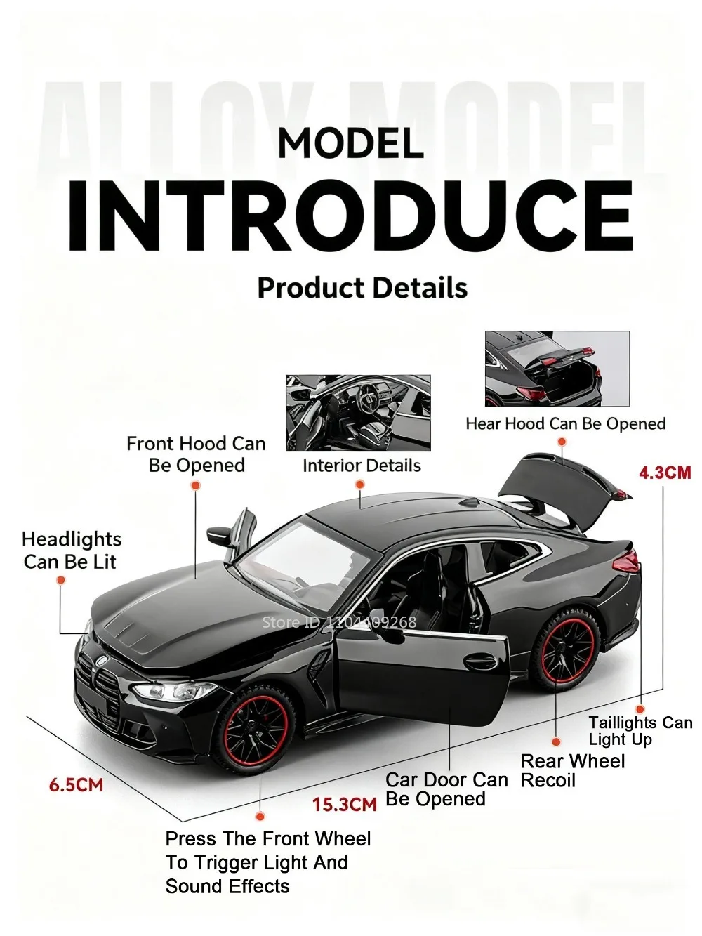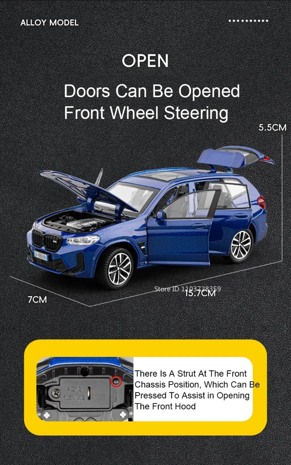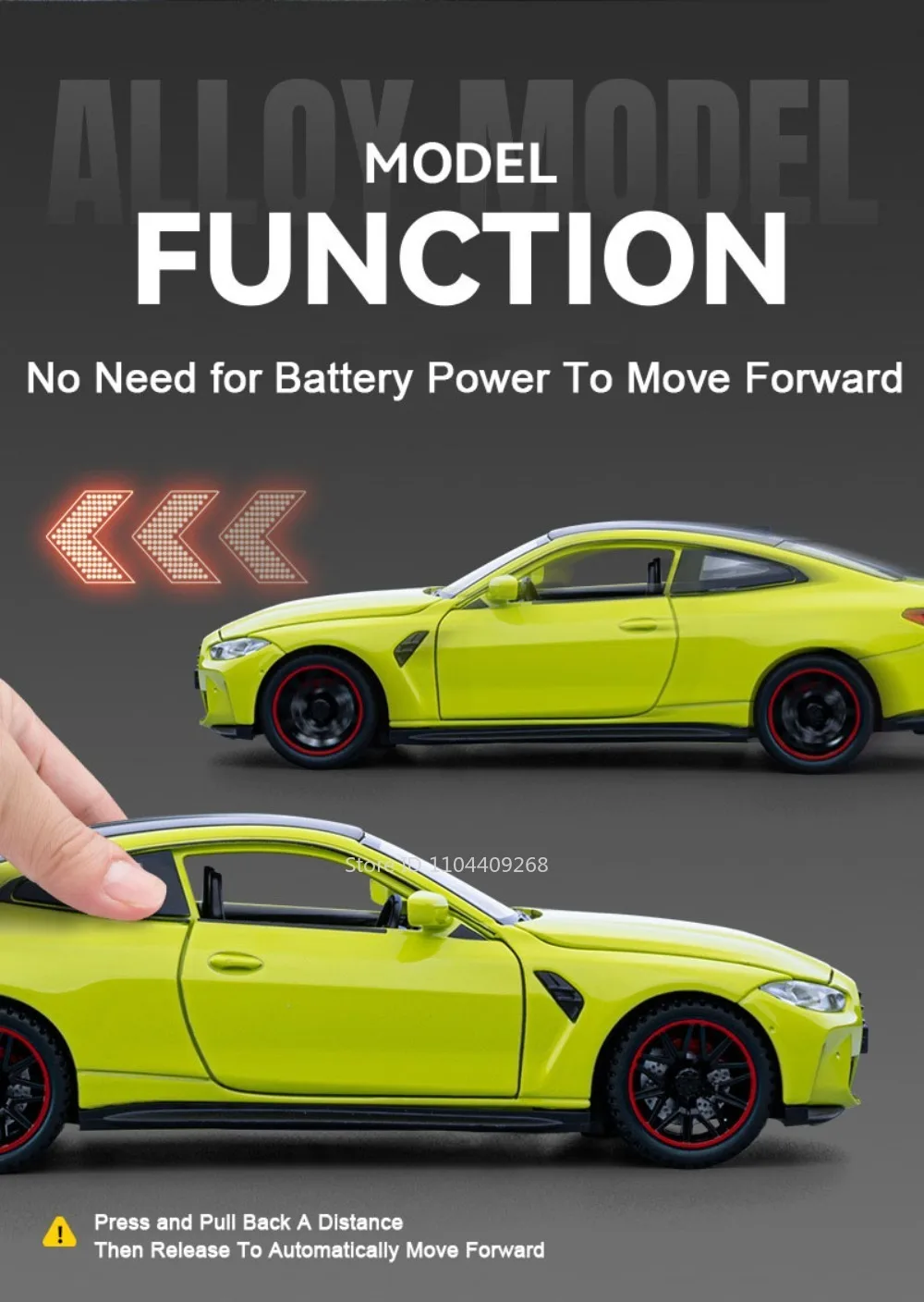 Scale 1:32 M4 X3M Toy Car Model Pull Back Music Light Doors Opened Miniature Vehicle Metal Diecast Models Kids Educational Gifts