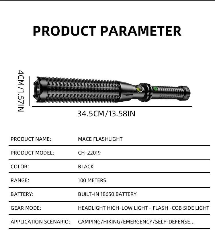 • Multi-Functional Use :This product is not just a flashlight, it's a multi-functional tool for vehicle patrol, self-defense, and emergency situations.
