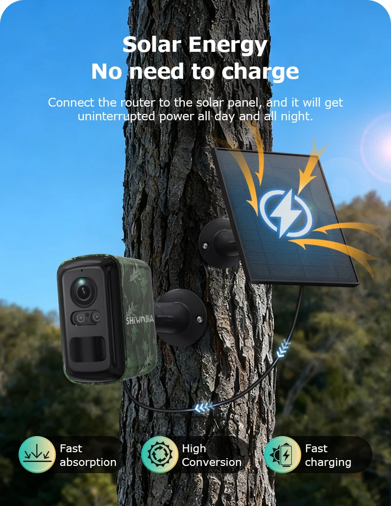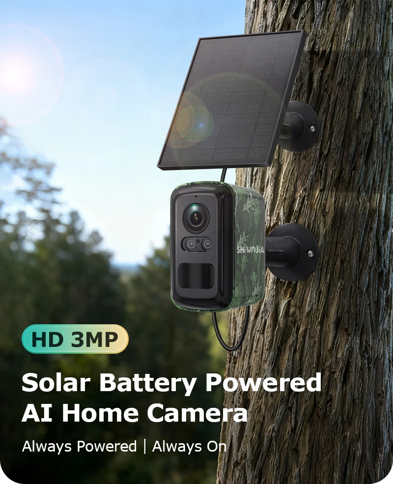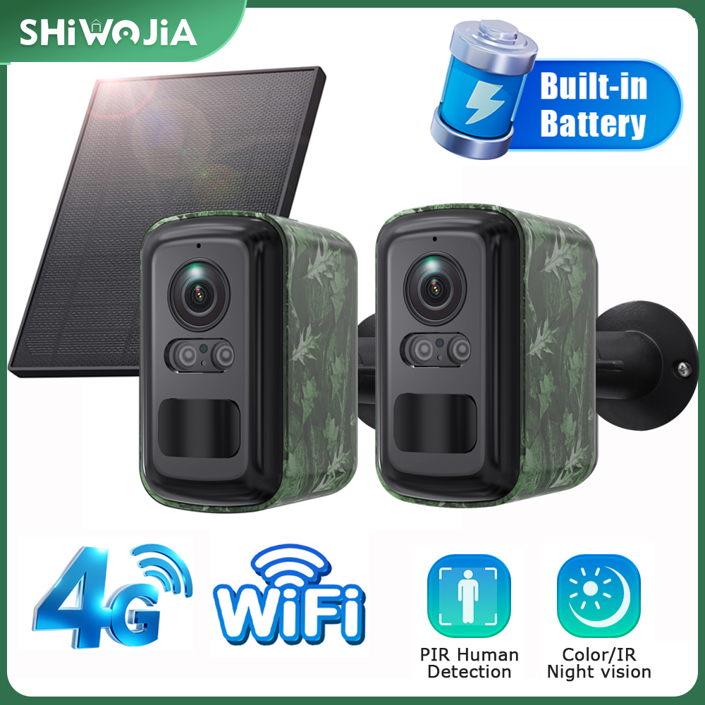SHIWOJIA 3MP Solar Camera 4G/WIFI Security Outdoor Wireless Battery Powered Bullet Security Camera Two Way Audio