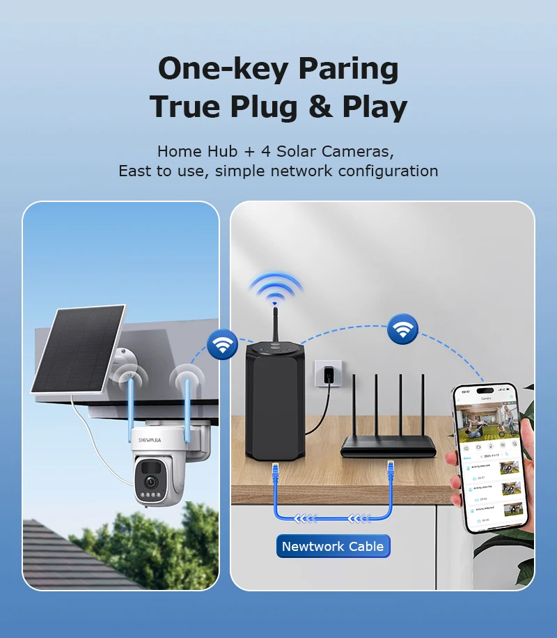 •Unique Point: Wifi Home Hub + Wifi Solar Camera 2CH Combo kits
