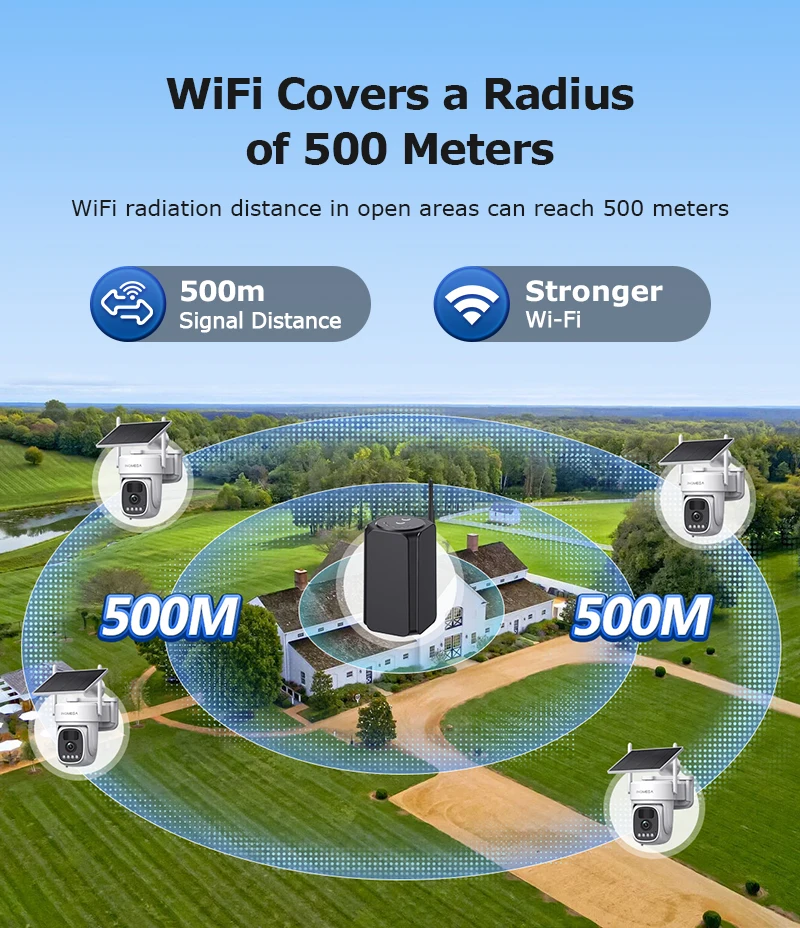 •Remote WIFI transmission between the host and camera, suitable for video surveillance needs in large areas such as farms, estates, orchards, villas, etc.