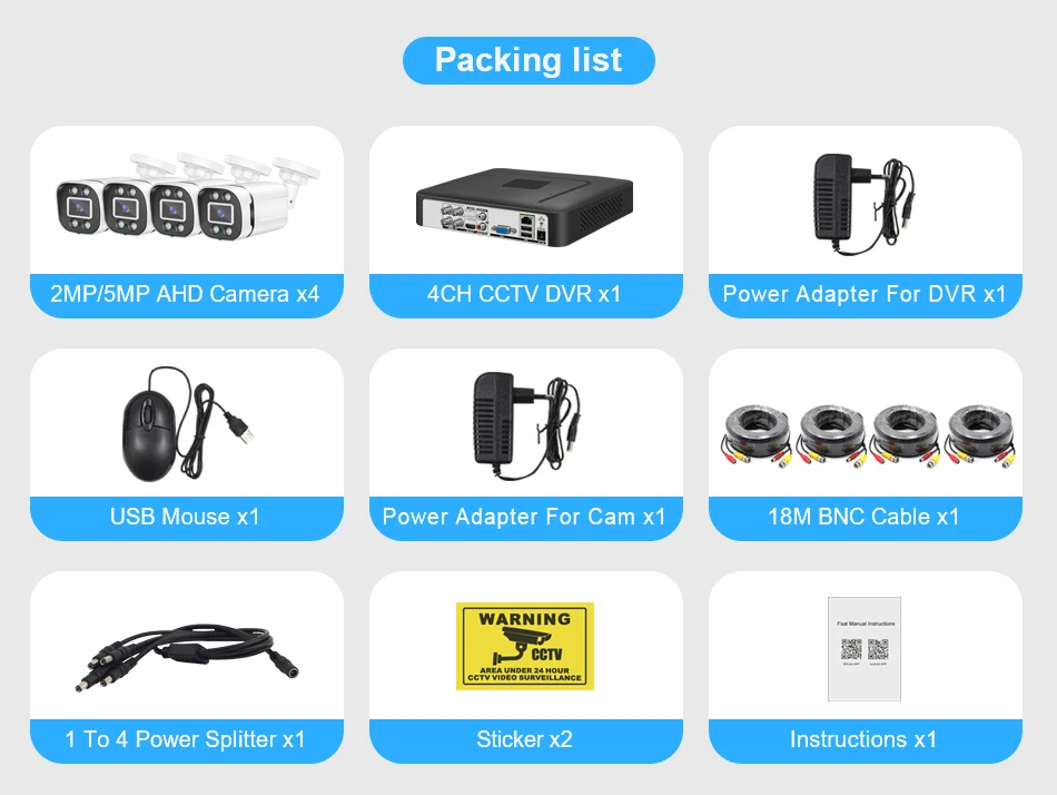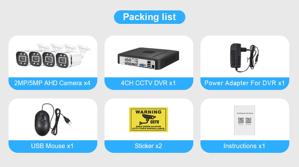 6. The DVR is 4CH hybrid DVR, support AHD Camera, Analog Camera, IP Camera, TVI Camera, CVI Camera;