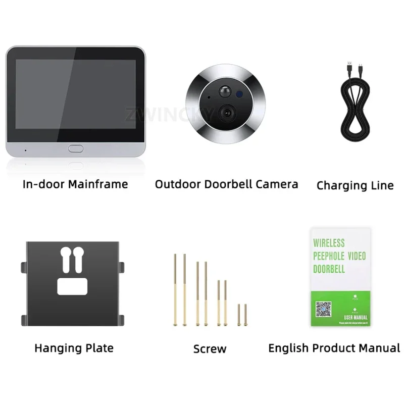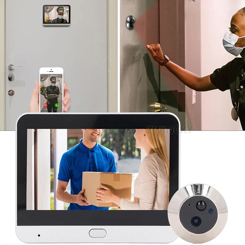 SMART DIGITAL VIEWER: Wirelessly connect the doorbell camera to your WiFi router. Monitor and communicate with visitors through noise reducing one way or two way intercom (view visitors, make video calls, take snapshots, record sound, etc.). Control the system functions through a mobile app, not an indoor display screen.