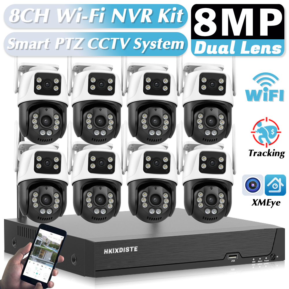 Smart 8CH Wifi Wireless NVR Kit ICSee Outdoor Wifi Security CCTV Cameras 8MP 4K Dual Lens Smart Surveillance CCTV System XMEye