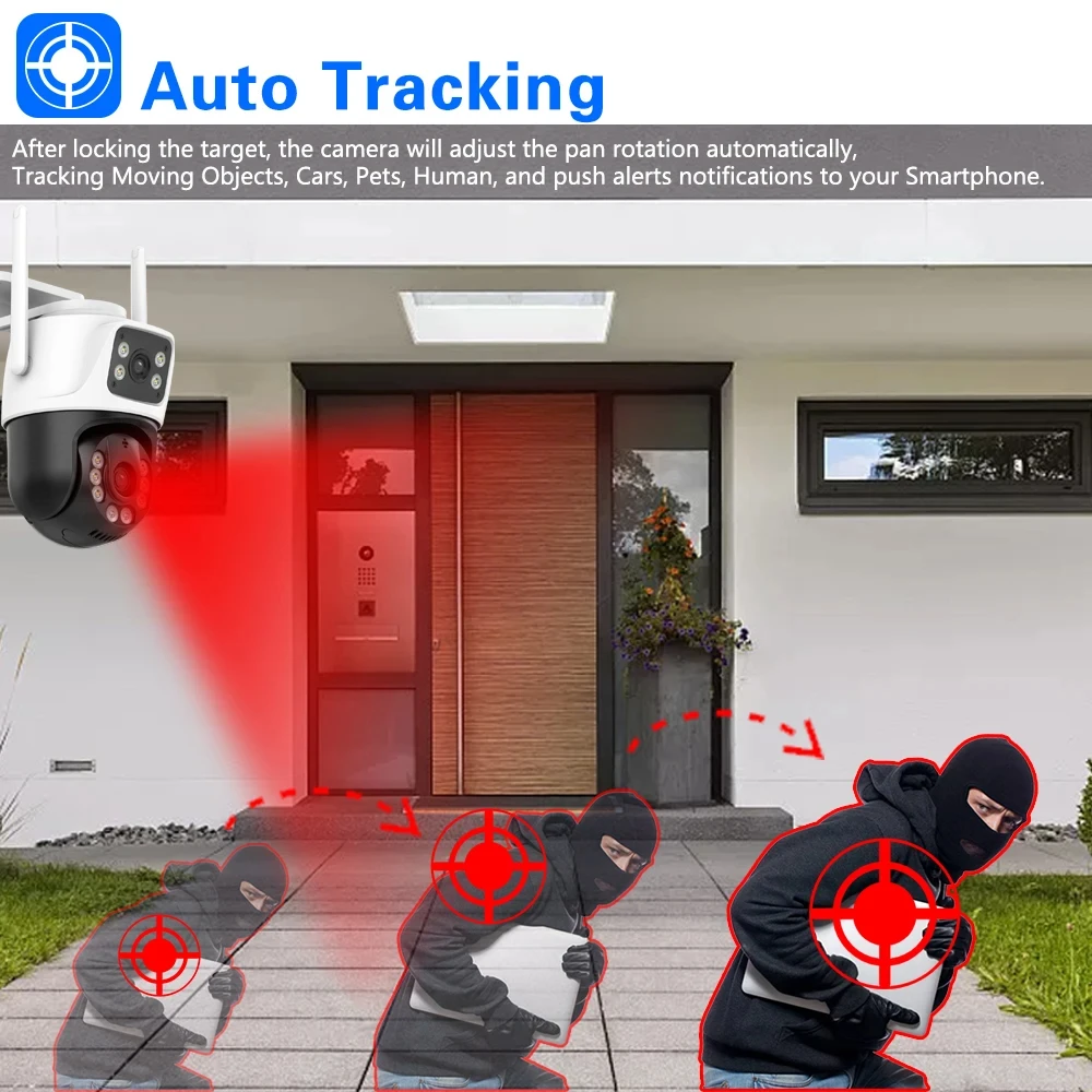 Fixed lens + rotating lens, allowing you to continuously monitor key areas without losing images from other areas, making it safer and more efficient. The price of one camera, achieves the effect of two cameras.