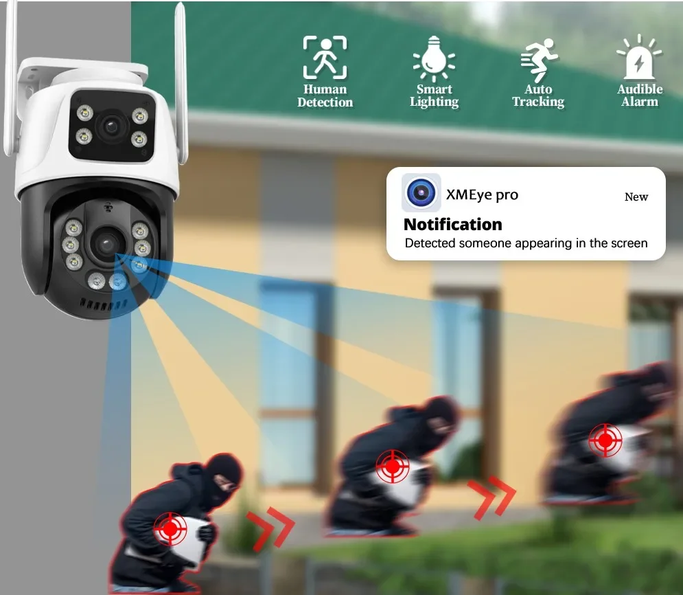 Fixed lens + rotating lens, allowing you to continuously monitor key areas without losing images from other areas, making it safer and more efficient. The price of one camera, achieves the effect of two cameras.