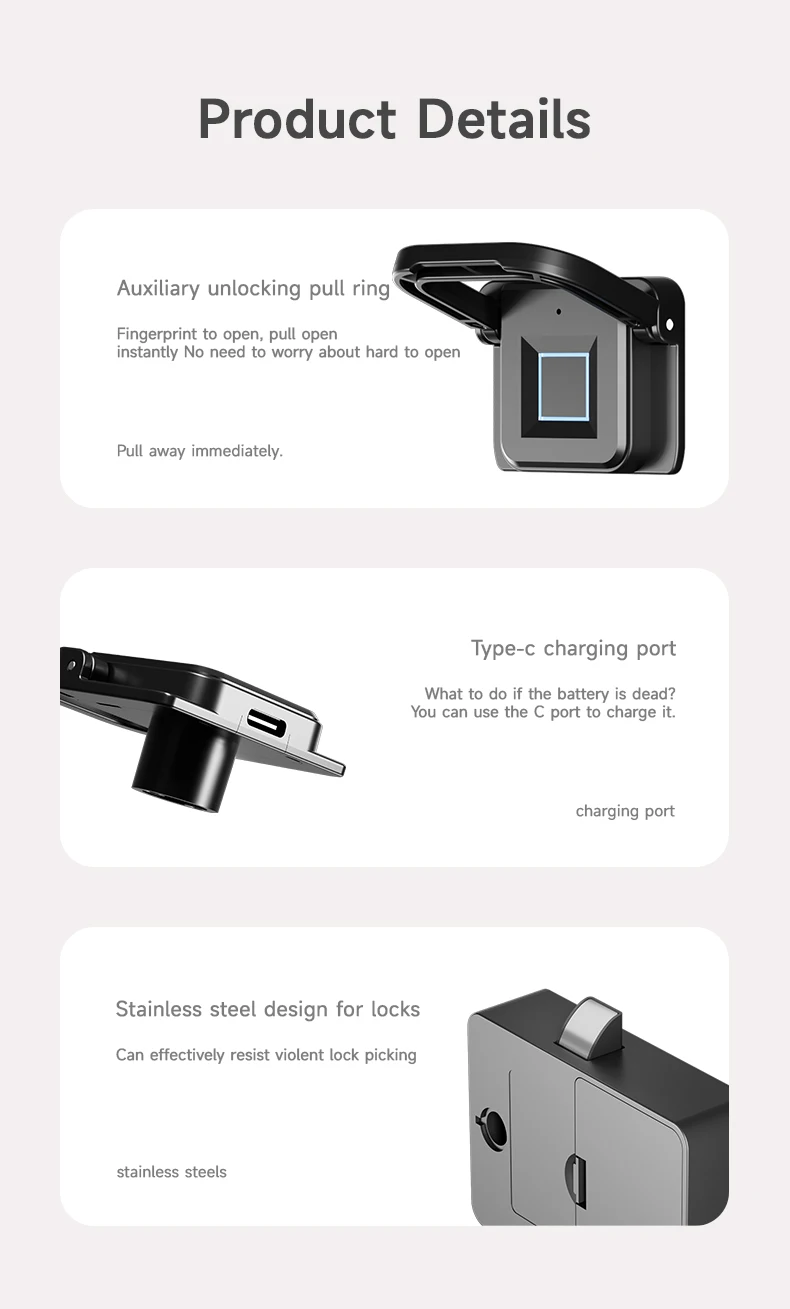 Smart Fingerprint Cabinet Drawer Cupboards Door Lock Biometric Electric Lock 20 Users