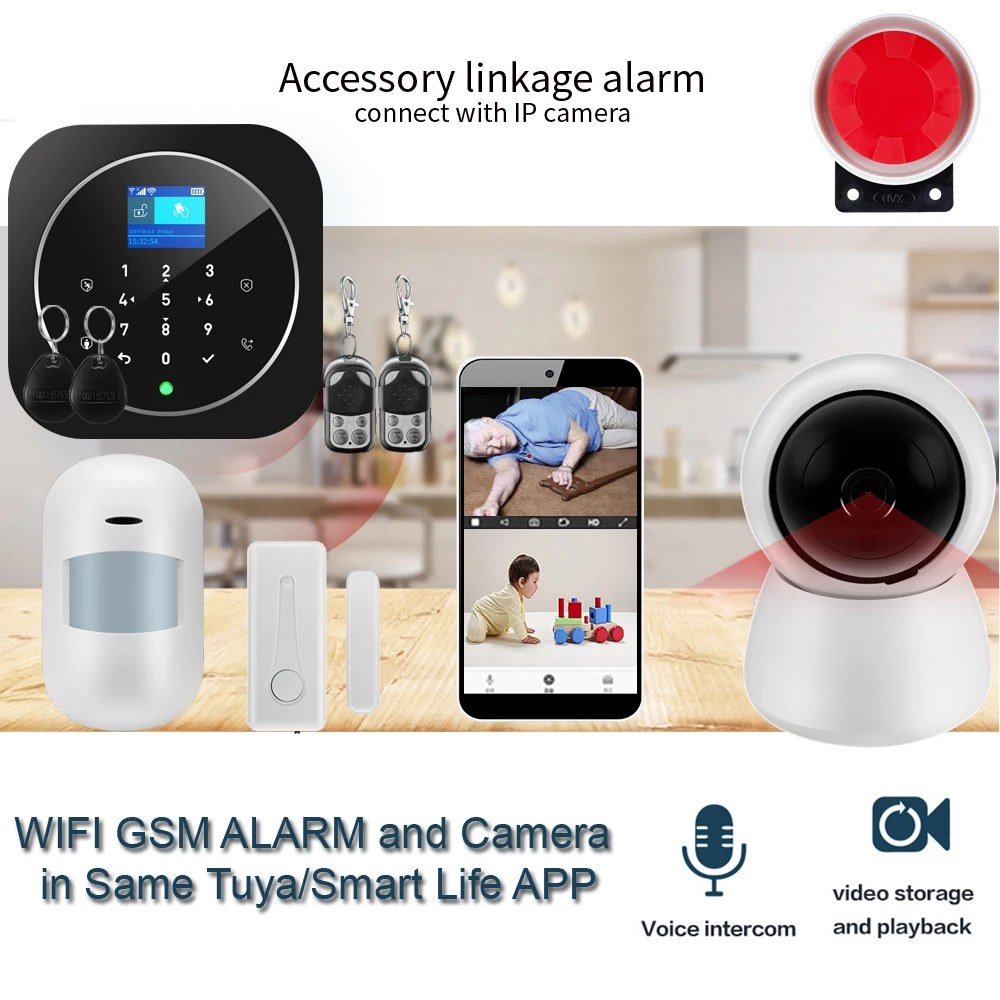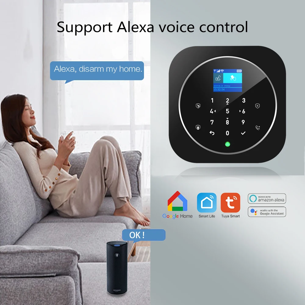 Smart Life Alarm System for Home WIFI GSM Security Alarm Host with Door and Motion Sensor Tuya Smart App control work Alexa