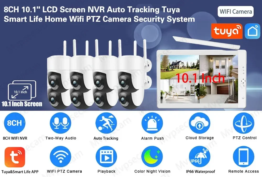 Smart Life Home 8CH 10.1 Inch LCD Screen WIFI NVR 5MP PTZ Camer Audio Video Surveillance Wireless WIFI CCTV Security Tuya System