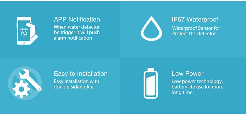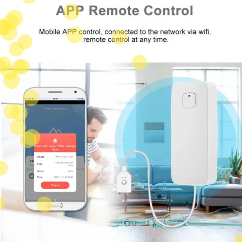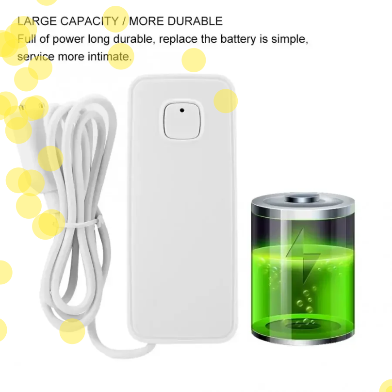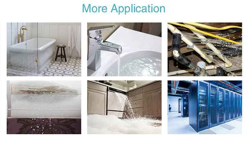 Mobile APP control, connected to the network via wifi, remote control at any time, you will receive a notification if there is a leak. IP67 waterproof water leakage detector probe. Wall-mounted, easy to use. Removable battery, easy for installation, low power consumption, energy-saving. You can share the device with your family.