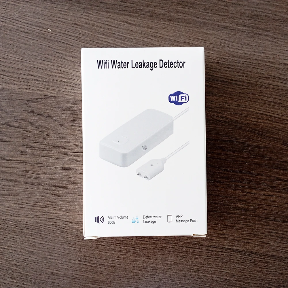 Type: Water Leakage Detector Mateial: ABS Color: White Alarm sound:80dB Battery: 2 * AAA battery (not included) Input voltage: DC3V Static current: ≤10yuA Alarm current: ≤160mA Low-voltage indication: ≤ 2.6V WIFI: 802.11 b/g/n Detection: Water-sensor detector Installation method: Wall-mounted Working temperature: -10-50℃ Working humidity: 95%RH
