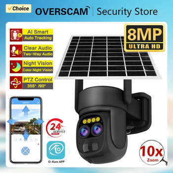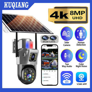 4K 8MP Outdoor WiFi Solar Camera Dual Screen Wireless Surveillance Camera PIR Human Auto Tracking Solar Security CCTV Cam V380