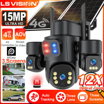 LS VISION 15MP AOV 4G Solar Camera 12X Optical Zoom Outdoor Surveillance Camera Three Screen 24/7 Recording Auto Tracking HiEasy