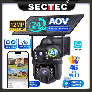 Sectec 12MP 4G SIM Solar Camera AOV Outdoor Dual Lens 360° View 10W Solar Panel Security PTZ IP WIFI Camera 10500mAh Battery