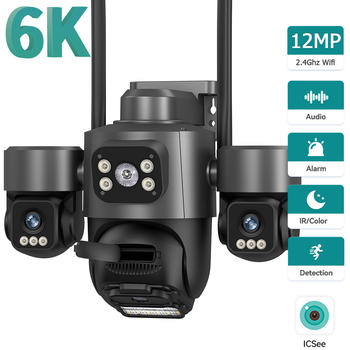6K 12MP WIFI IP Camera Three Lens Triple Screen 10x Zoom PTZ Auto Tracking Security Protection Outdoor CCTV Video Surveillance