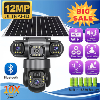 WIFI 12MP Dual Lens Three Screens Solar Camera CCTV Outdoor Automatic Human Tracking Low Power Battery CCTV Security Protection
