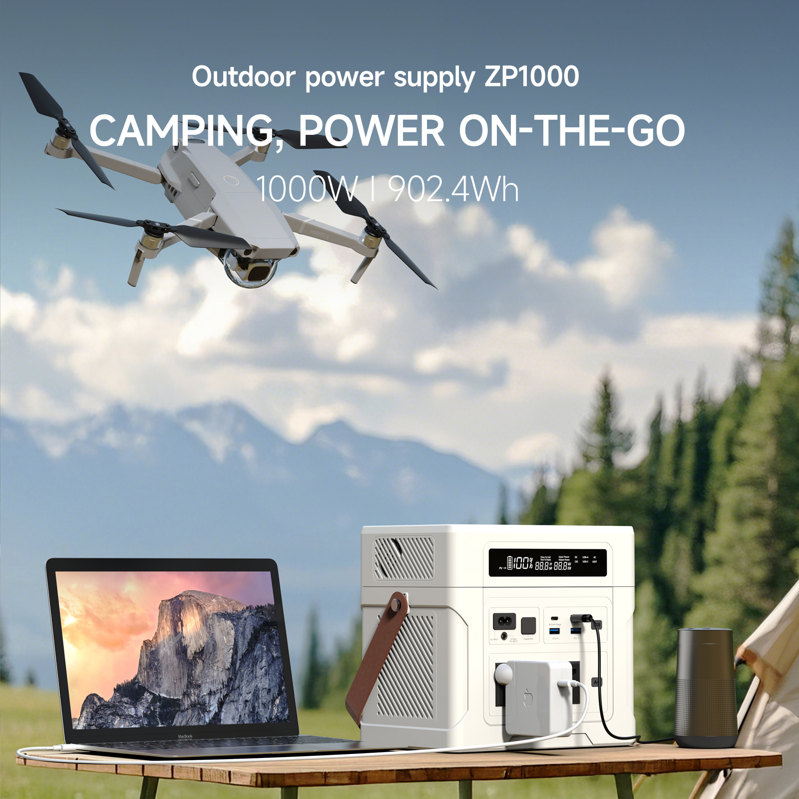 Solar Generator 902Wh LiFePO4 1000W Peak Simultaneous Charge&Discharge Expandable Pack 10W LED Light for Firefighting Emergency Portable Power Station