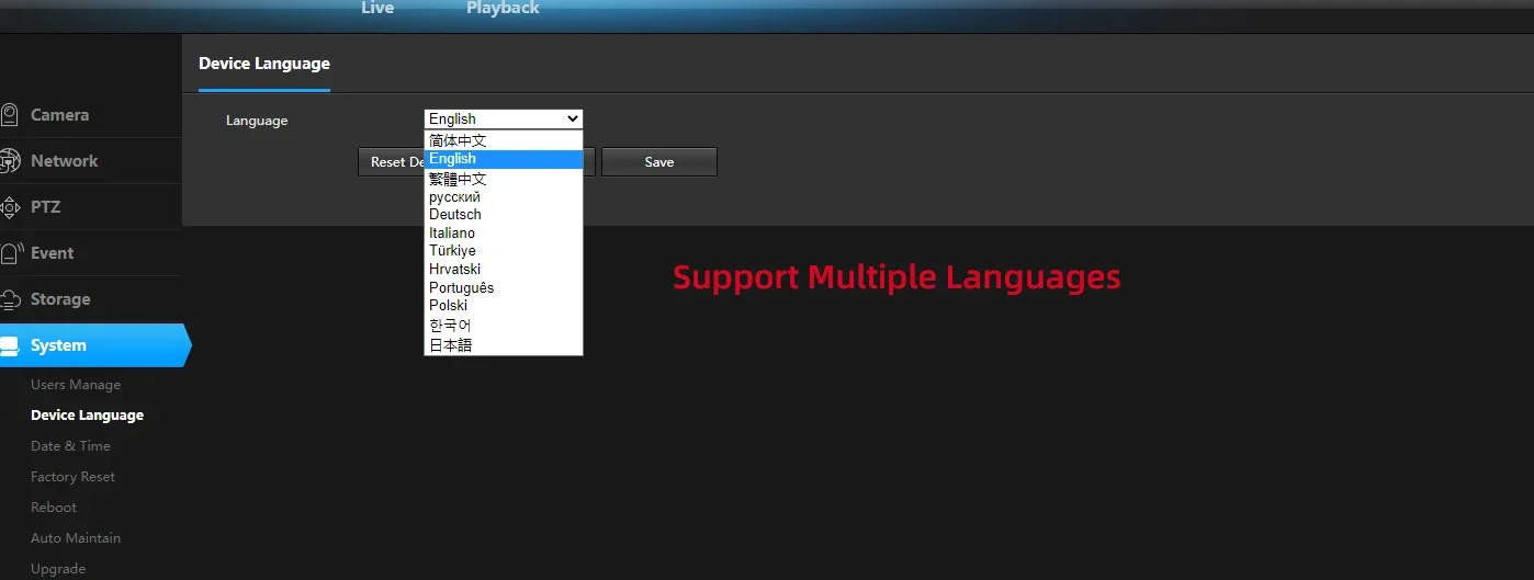 1.Ensure that the camera is connected to the network, enter the IP address (the default IP address is 192.168.0.123), and the following interface will pop up. Enter the user name and password (the default user name and password are admin and 123456) and click login to enter the preview interface