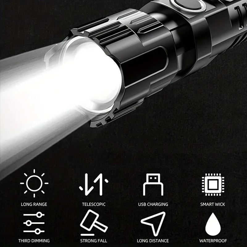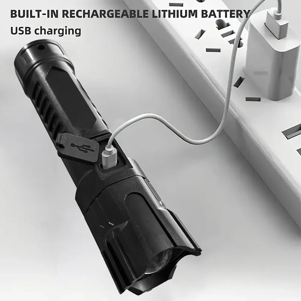 Super Bright LED Flashlight USB Rechargeable Flashlights with Tactical Zoom High Power Spotlight Outdoor Camping Fishing Torch